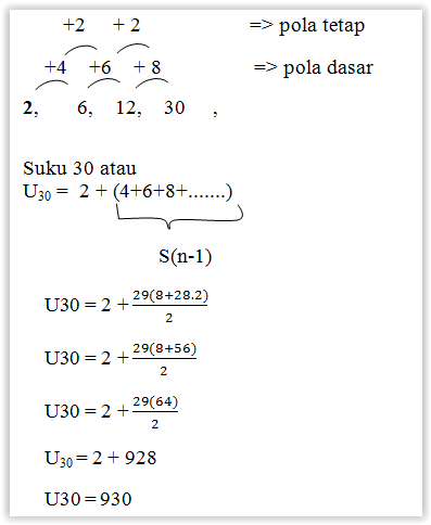 disimpulkan bahwa pola ke 30 adalah 30 x 31 = 930 karena memuat 30 baris dan 31